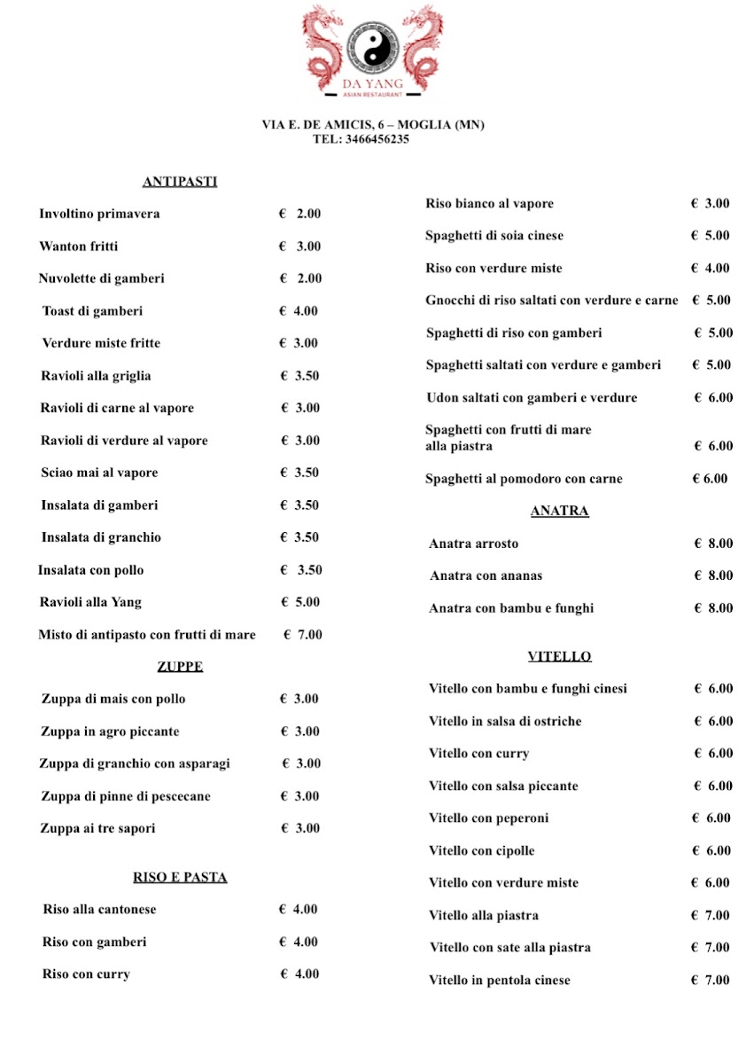 Welcome to Ristorante Cinese Yang, a hidden gem nestled in Moglia, Italy. This traditional Chinese restaurant is renowned for its authentic flavors and dedication to culinary perfection, as echoed by delighted patrons. Reviews celebrate the generous portions, moderate pricing, and a welcoming atmosphere that makes every visit enjoyable.